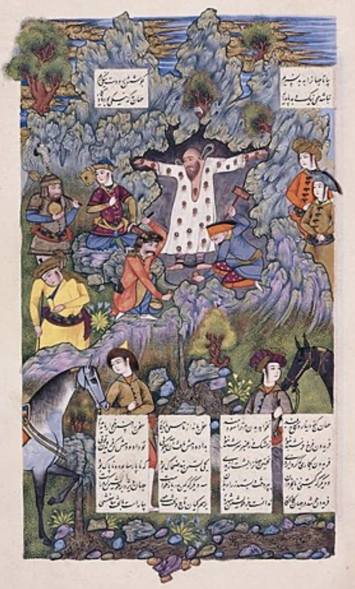 殺される運命を免れた若い仲間たちは、カワによって軍隊として用意され、ザハクの砦に歩いて行き、カワはハンマーで無慈悲な王ザハクを殺害しました。